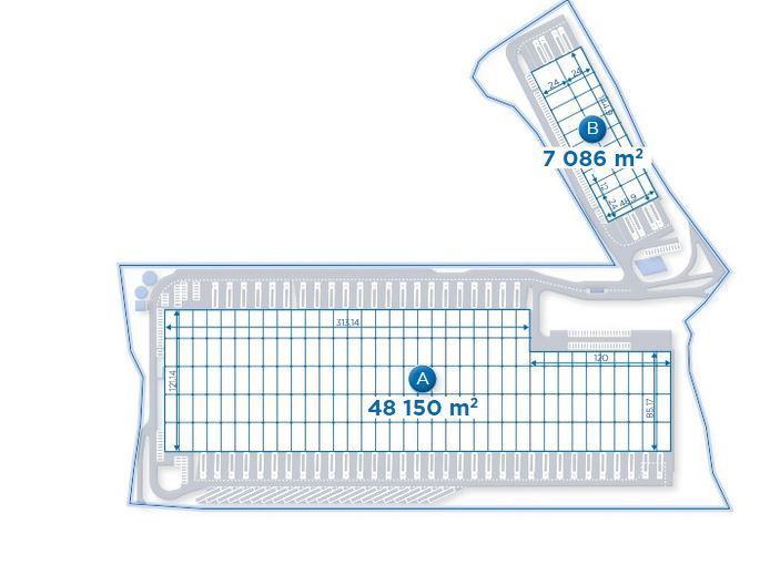 Nazwa budynku Dostępność Status budynku Całkowita pow. Dostępna pow. Rok budowy Min. moduł. Certyfikat Powierzchnia biurowa Wys. składowania Siatka słupów Nośność posadzki Oświetlenie Doki przeładunkowe Świetliki Klapy dymowe Tryskacze Ogrzewanie Brama wjazdowa z poziomu "0"